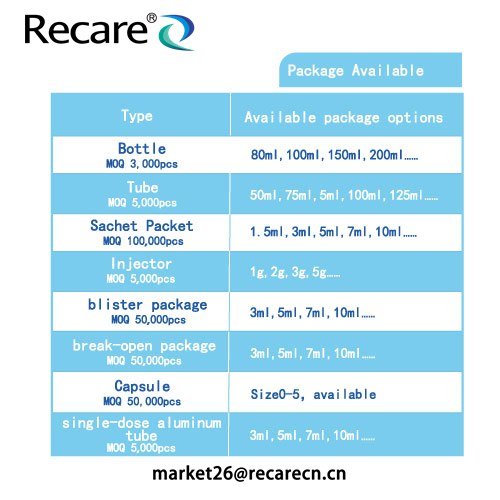 Packaging:Available in 5ml/10ml sachets, 50ml/100ml tubes, or 50ml/100ml bottles. Custom packaging is also available.